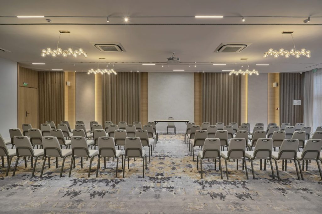 Бизнес гостите могат да разчитат на модерни и гъвкави конферентни пространства, оборудвани с най-новите технологии, докато зоната за уелнес предлага релакс след динамичния ден – със спа процедури и 24-часов фитнес център.