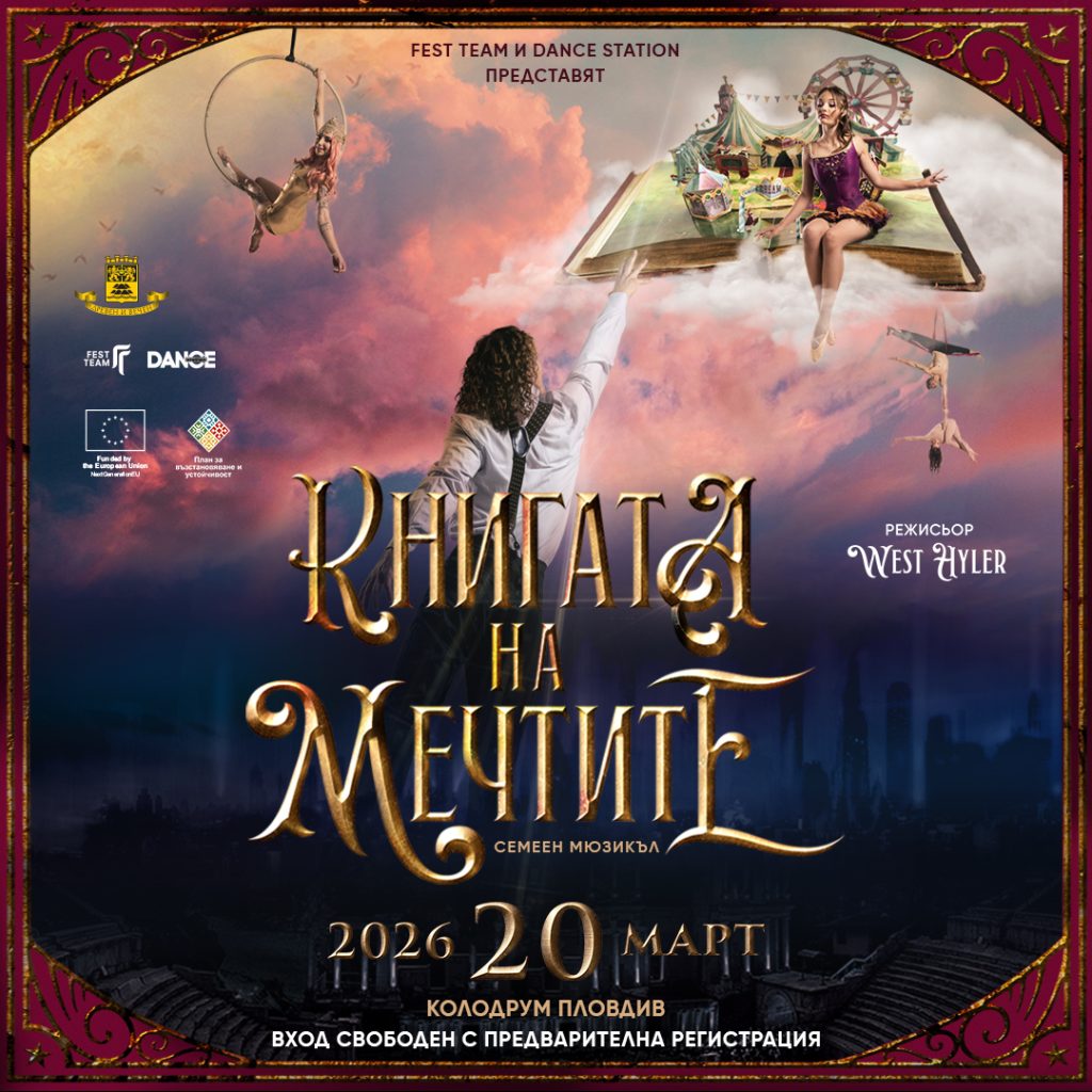 На 20 март 2026 г. публиката в Пловдив ще има възможност да се потопи в магията на „Книгата на мечтите“ – спектакълът, който съчетава театър, музика, танц и цирково изкуство в едно цялостно сценично преживяване. Представлението ще е с вход свободен, а пространството на зала Колодрум ще даде възможност за едно по-силно визуално въздействие и динамика, където всяка сцена, движение и музикален тон ще пренесат публиката в центъра на семейния спектакъл, изпълнен с емоционална дълбочина и универсални послания – за смелостта да следваш мечтите си, за силата на приятелството и за онези ключови срещи, които променят живота ни.