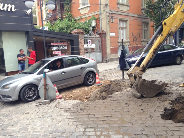 Екип на В и К скорострелно се захвана с възстановяване на пропадналата улица „Отец Паисий” , след алармата на Под тепето, увери се наш репортер. Огромен къс от павираната настилка потъна вчера, а минувач щеше да строши крака си пред погледа на десетки пешеходци в зейналата яма, пълна с вода от канализацията.