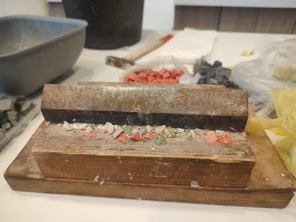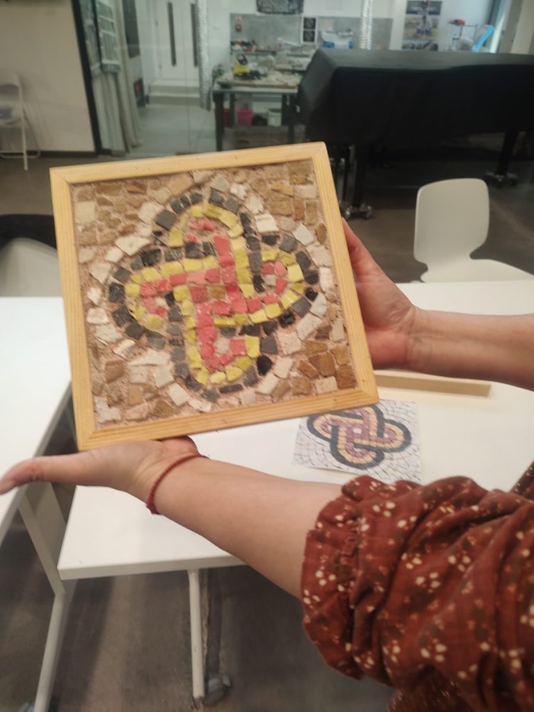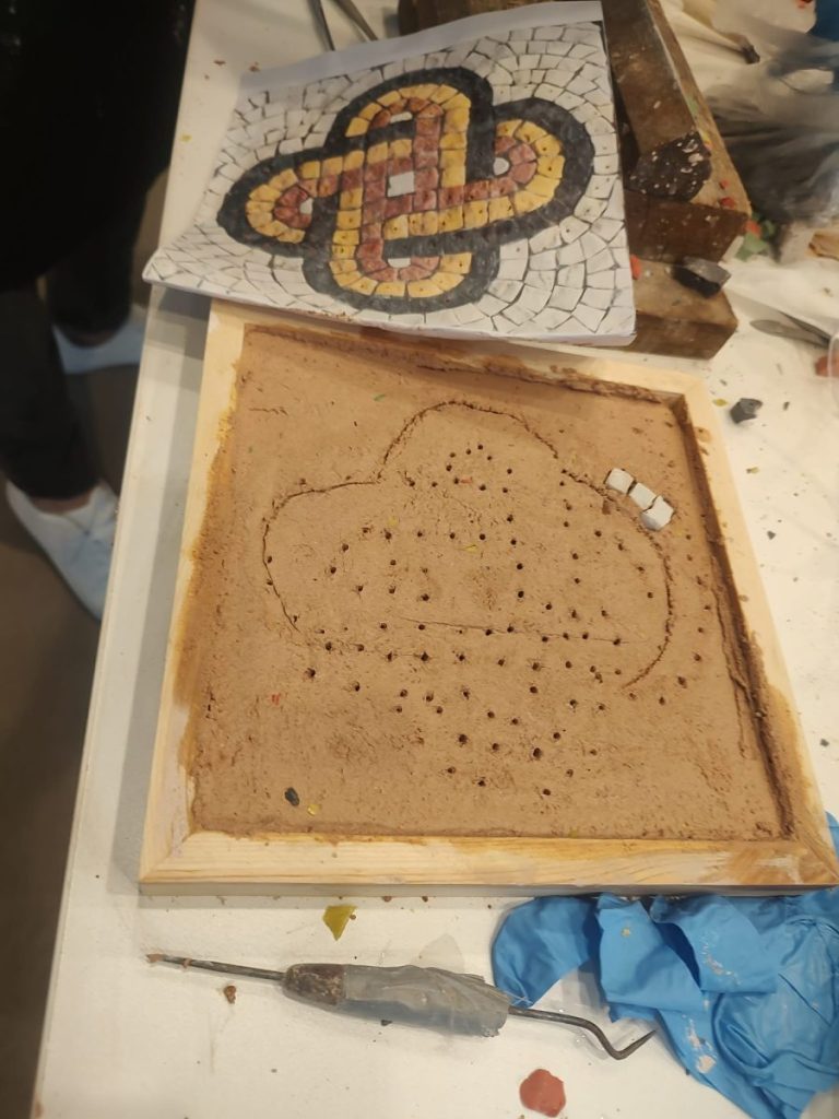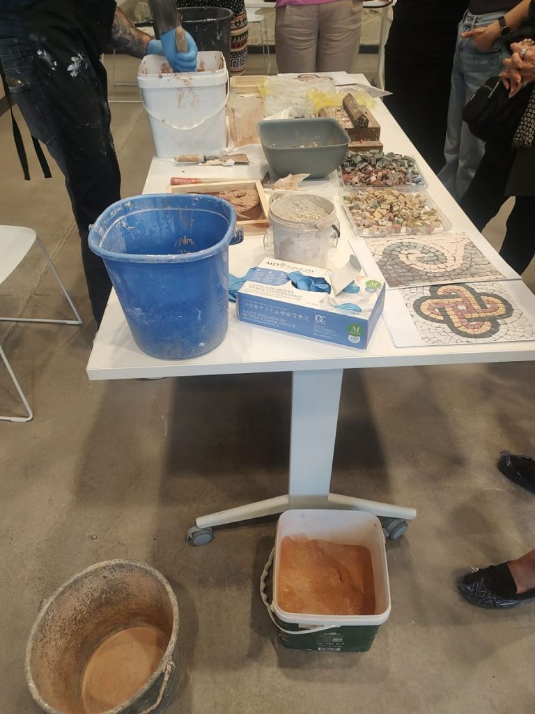 Пред погледа на участниците камъкът се превърна в тесери чрез прецизно ръчно сечене, а след това бе подготвено и хоросановото легло – основата, върху която постепенно се изгражда мозайката.