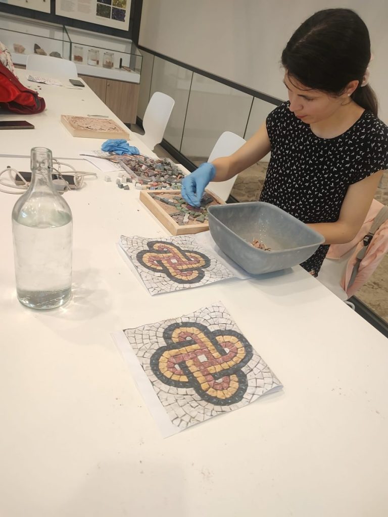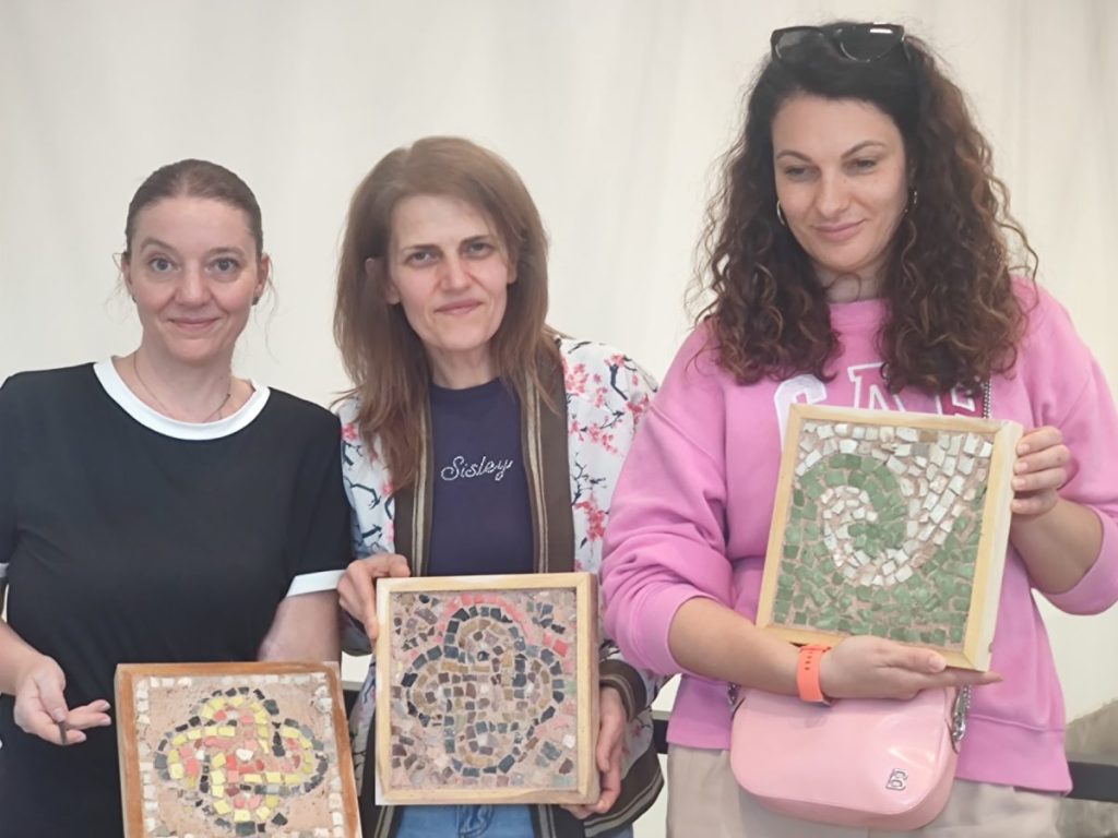 Участниците в демонстрационната работилница създадоха собствени мозайки в Епископската базилика на Филипопол по късноантична технология