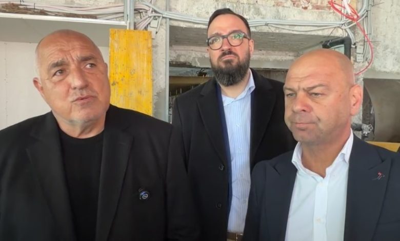 Лидерът на ГЕРБ Бойко Борисов се появи на инспекция на ремонта на кино Космос в Пловдив, придружен от кмета Костадин Димитров и представители на местната партийна структура.