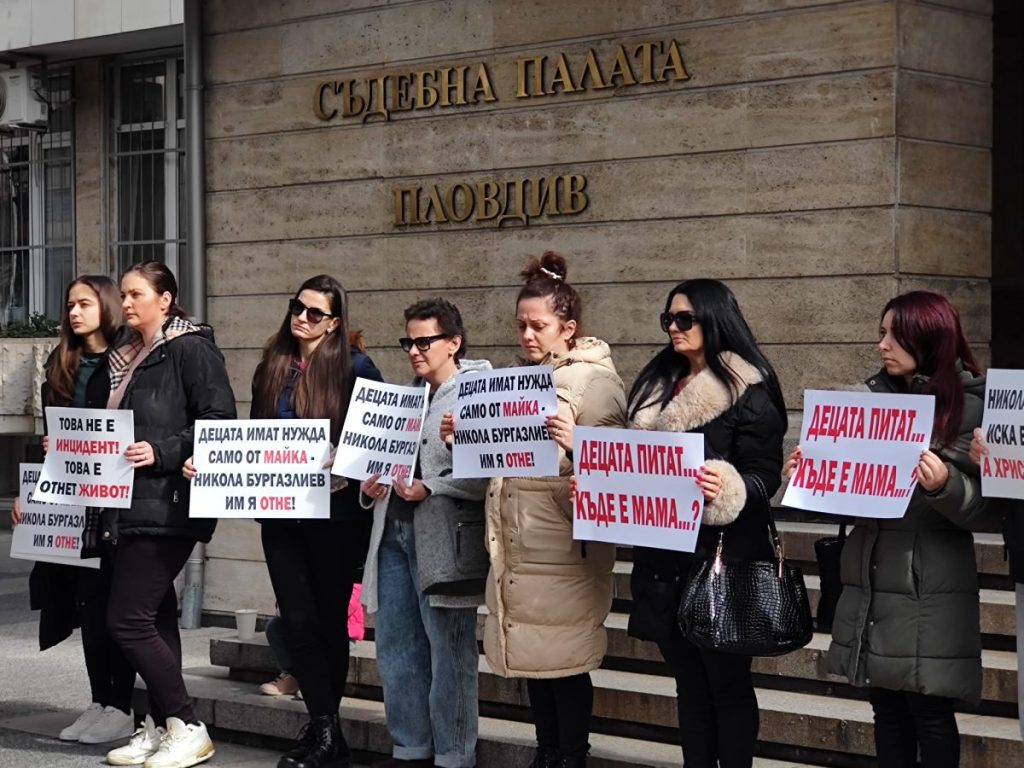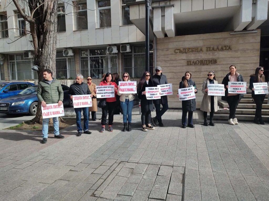 На плакатите пред съда днес пише: „Децата питат: къде е мама?“ и „Това не е инцидент, това е отнет живот“.