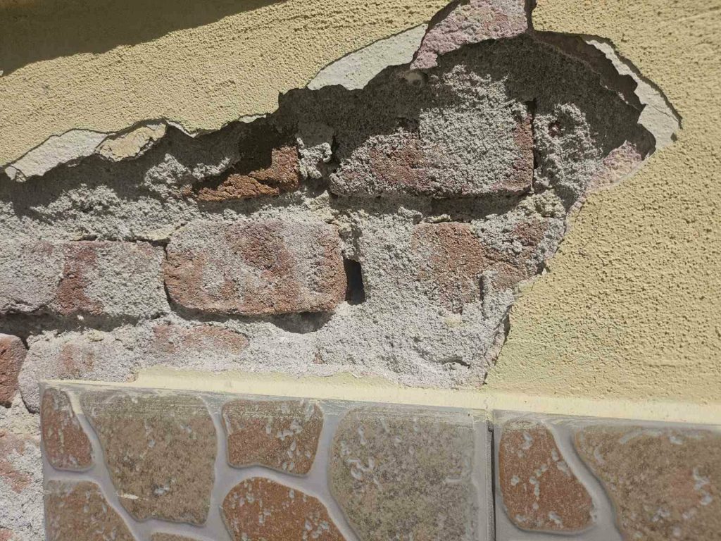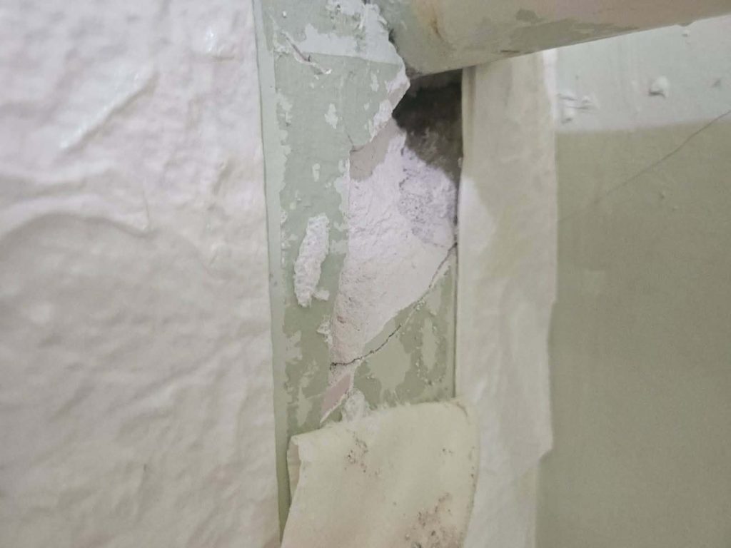 По стените има пукнатини и олющена мазилка, а част от щетите са прикрити с декоративни пана по препоръка на Регионалната здравна инспекция. Това обаче е временно решение и не отстранява причината за проблема, свързана с високите подпочвени води в района и компрометираната конструкция.