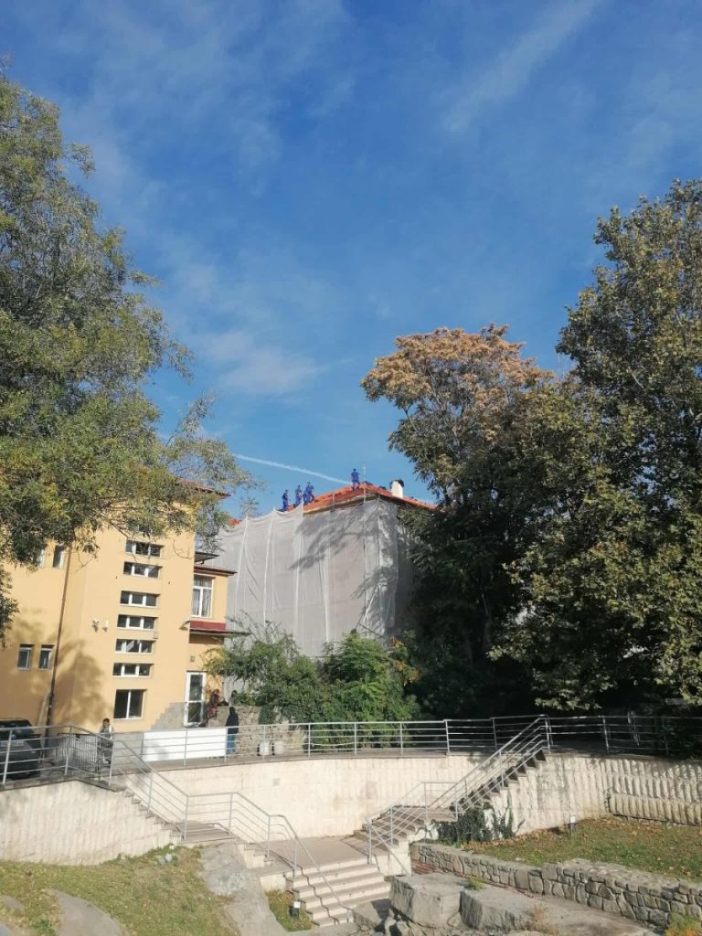 През февруари в детайл ви информирахме кога се очаква да започне дългоочакваната реконструкция на емблематичната сграда, част от активите на Академията за музикални, танцови и изобразителни изкуства „Асен Диамандиев“. Тогава ректорът АМТИИ доц. Жан Пехливанов съобщи, че текат тежките документални процедури, които са се влачили заради спецификата си до 13 септември- от тази дата ръководителят на ВУЗ-а разполага с всички необходими книжа и е веднага е дал начало на дейностите. Само малко повече от месец по-късно покривът на постройката е почти напълно обновен и в момента се довършва, като паралелно се работи по вътрешното укрепване и фасадата. И по всичко личи сагата с реконструкцията на сградата на първата пловдивска гимназия ще приключи до година.