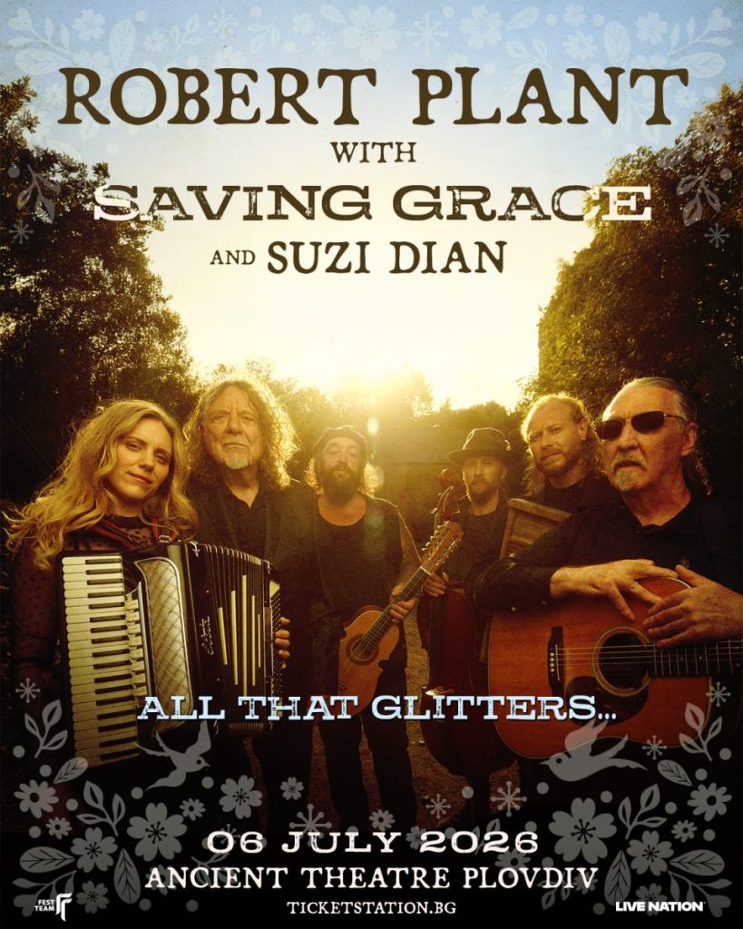 „All That Glitters…” – концертът на Робърт Плант със Saving Grave и великолепната Сюзи Диан се осъществява по покана на Fest Team и е част от серия от концерти, които стартираха миналата година и продължават и през 2026. Античният театър в Пловдив, с неговата естествена акустика и усещане за време извън времето, е логичен избор за локация на този вълшебен концерт. Това е място, където музиката, фина, наситена с пластове и сенки и без излишен шум и претенция, може да диша между древните камъни. Събитието във фейсбук можете да намерите тук.