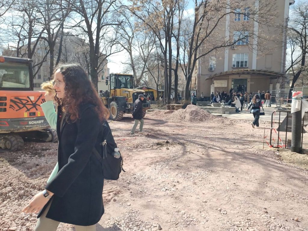 В пиковите часове хиляди млади хора преминават оттук – често по няколко пъти на ден. Въпреки това към момента няма обозначен маршрут, който да осигурява безопасен пешеходен достъп до университета. Студенти лавират между багери, строителни материали и работници, а строителите от своя страна се опитват да продължат работата си, като постоянно спират, за да пропуснат преминаващите.