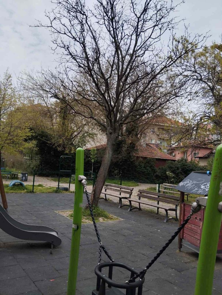 Две напълно изсъхнали дървета „дебнат“ на детска площадка в район Северен и застрашават здравето и живота на малчуганите, които си играят там, както и на родителите им. Жители на района са силно обезпокоени от надвисналата опасност и леко отчаяни, тъй като никой не им обръща внимание- сигнализирали са и отдел Екология в район Северен, както и ОП „Градини и паркове“. Площадката се намира във вътрешния двор на адресите бул. „Марица“ 51 и 53.