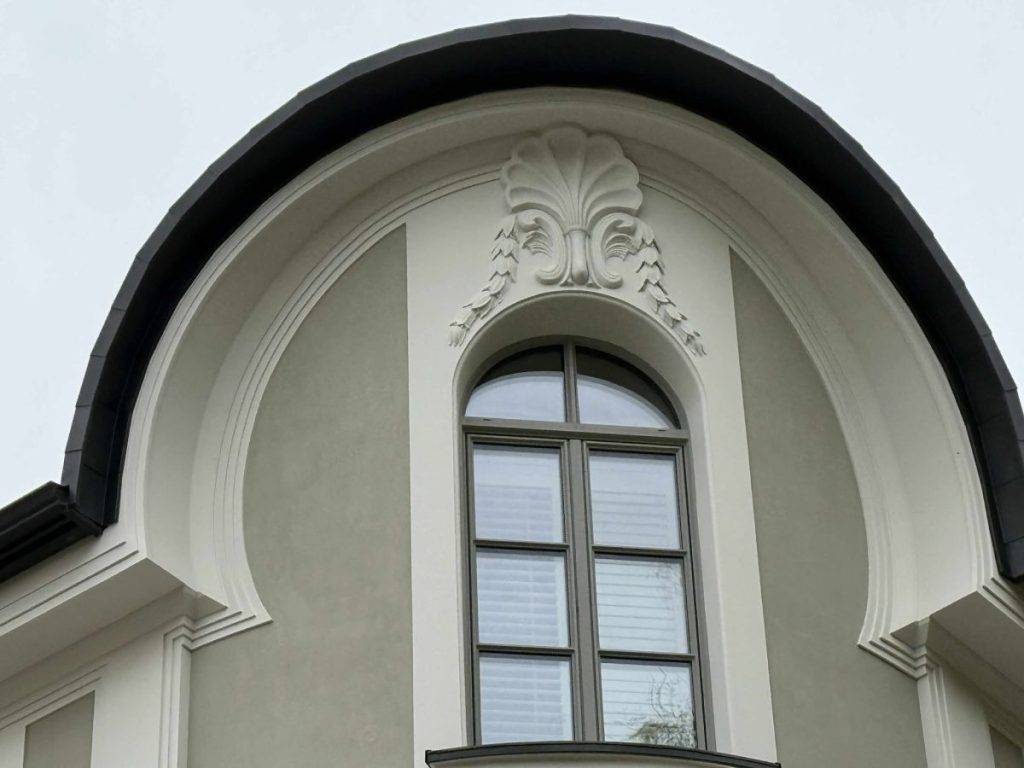 Вековната къща е ремонтирата с впечатляващо внимание към детайла, близко до идеалното отношение към оригинала и използване на качествени материали, със съвсем малко нови авторски решения. Основният силует на сградата е перфектно запазен – ъгълът, корнизът и деликатните декоративни елементи. Единствените разлики от оригиналната сграда по уличната линия са цветовото решение в два цвята, вместо един – но в подходящи, а не ярки и крещящи тонове, както и обединяването на прозорците с тънки и едва забележими лентовидни орнаменти през етажите. Във всички останали детайли сградата е на 100% в своя автентичен вид към улицата.