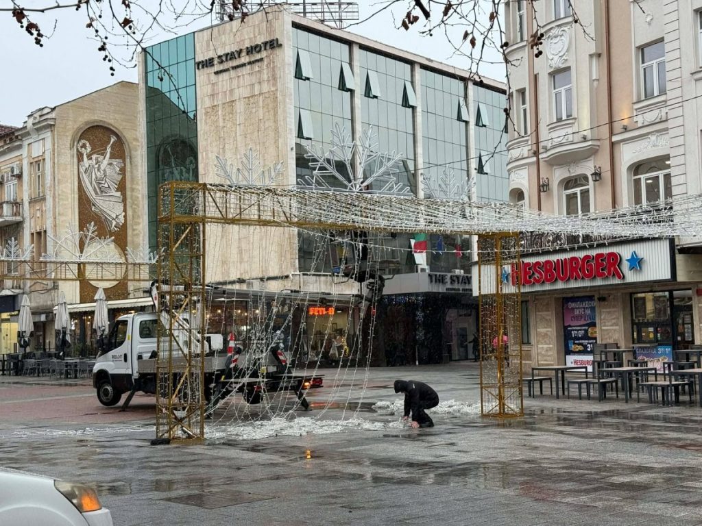 Стартира демонтажът на коледната елха пред кметството. Изкуственото празнично дръвче ще бъде премахнато заедно с украсата до края на деня, с което и коледно-новогодишното настроение ще си тръгне от центъра на града.