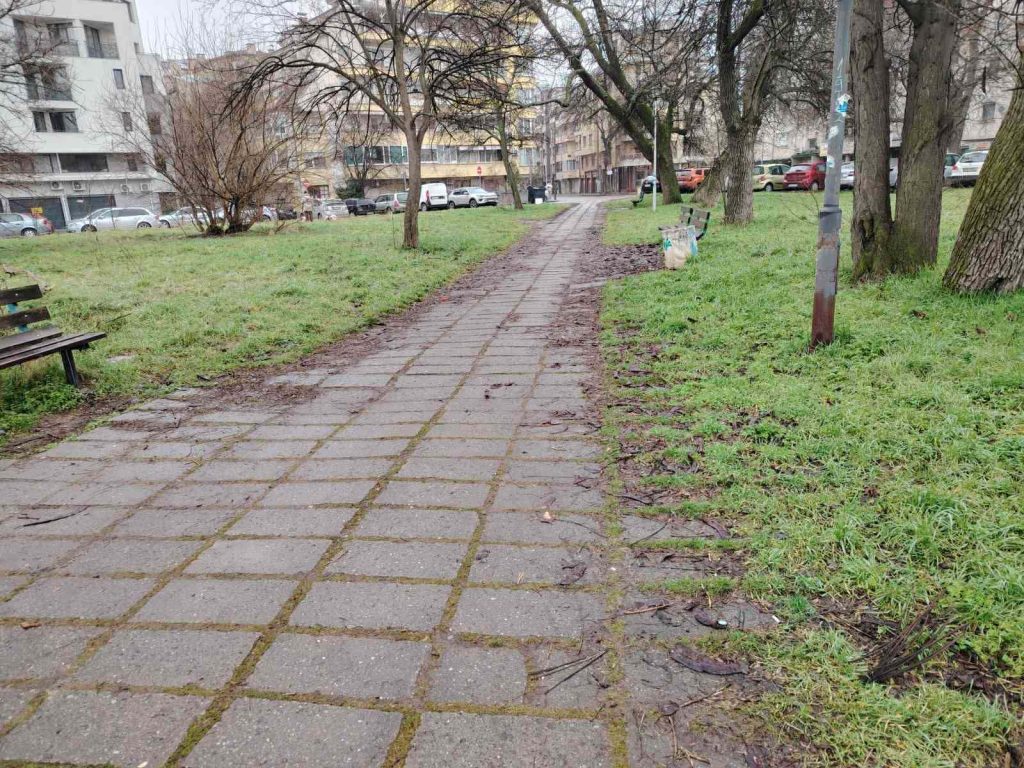 Развитието е от по-отдавна, като вместо парк, от месеци там има все повече и повече автомобили, които казят в площа – прах през лятото и кално през зимата. Ясно личат следите на колите, които навлизат дълбоко в парка, унищожавайки както зелената площ, така и пешеходните зони.