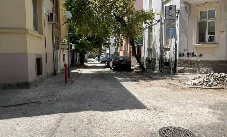 Струпани строшени тротоарни плочки и парчета, късове асфалт и павета, прахоляк, разорана и след това невъзстановена инфраструктура. Така изглежда днес една от най- идиличните пловдивски улици „Май”, в самото сърце на града. Вече почти година отсечка около 70 метра между улиците „Тодор Каблешков”и „Преслав” стоят разорани. Грозната гледка е символ за общинското бездействие и непукизъм към градската среда и проблемите на хората. А въпросната грозна гледка е само на хвърлей от кметството.