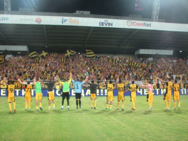 жълто-черното море по трибуните. Няма