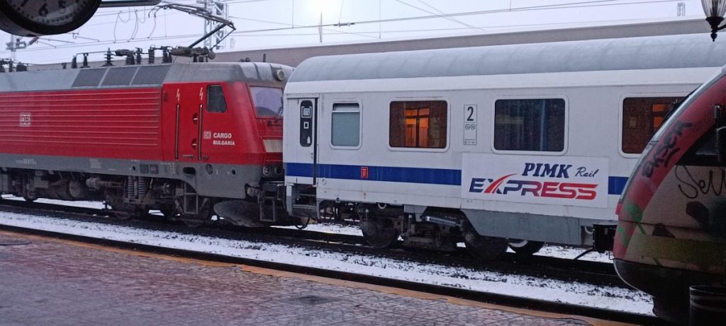 Локомотивът с номер 86013 е част от товарния флот на DB Cargo Bulgaria – дъщерна компания на германските железници, добре позната по релсите у нас. Истинският фокус обаче пада върху пътническия вагон на PIMK Rail Express – първата частна компания, лицензирана за пътнически железопътни превози в България и заявила открито намеренията си да влезе в директна конкуренция с БДЖ.