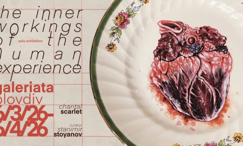 Независимото пространство за изкуство Galeriata в Пловдив представя самостоятелната изложба „The Inner Workings of the Human Experience“ на художничката Шантал Скарлет, с куратор Станимир Стоянов. Експозицията може да бъде видяна на ул. „Райко Даскалов“ 73 от 6 март.