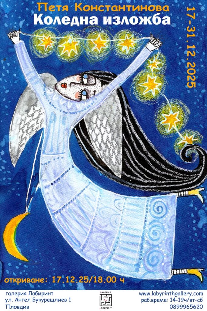 Под уютния покрив на галерия Лабиринт на 17 декември ще грейне и последната изложба за годината. Обичана от мнозина, Петя Константинова като един коледен ангел с рисунките си превръща напрегнатите делници в празници на радостта и обичта.