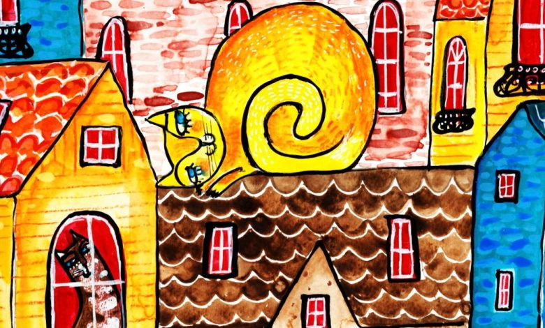 “Приготвила съм ви платна и рисунки, из които ( вярвам, никой няма да се изненада) притичват котки, ангели надничат над заснежени керемиди, прегръщат се влюбени двойки, дори си има и истински зелен кон ( да, зелени коне съществуват!), а един леко подпийнал музикант композира новата си любов над чаша коняк…” – приказният свят на художничката топли и отваря душите, точно като за Коледа.