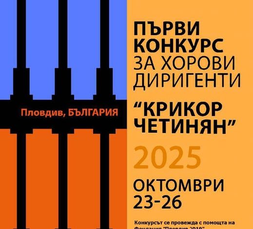 От 23 до 26 октомври 2025 г. Академията за музикално, танцово и изобразително изкуство „Проф. Асен Диамандиев“ – Пловдив ще бъде домакин на първия международен конкурс за хорови диригенти „Крикор Четинян“.