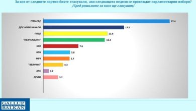Галъп: ГЕРБ увеличава преднината си, ПП–ДБ изпреварва „Възраждане“