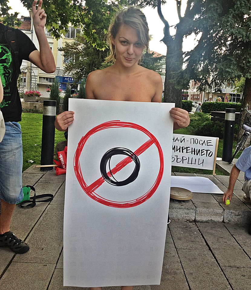 На тази снимка се виждат свалените ми дрехи. Разсъблеченият глас, позиция и цел. Откраднатата гордост, смелост и възхищение към всичко онова, което трябва да ме вдъхновява и което бива потъпквано. Ако съм гола, какво ми остава? Да съблека и тях- овластените! Но да ги съблека не от дрехите, не от медийните им брони, не от пластовете им банкноти, с които са се обвили. Да сваля щита им – Властта.