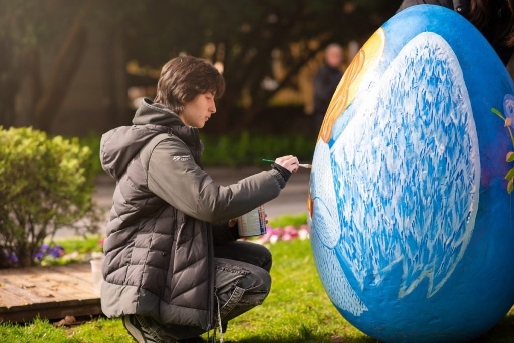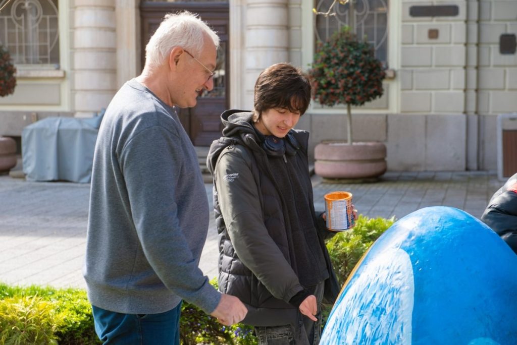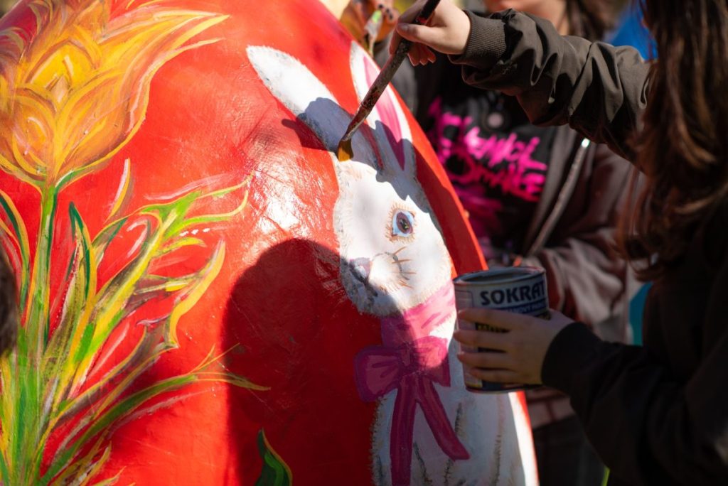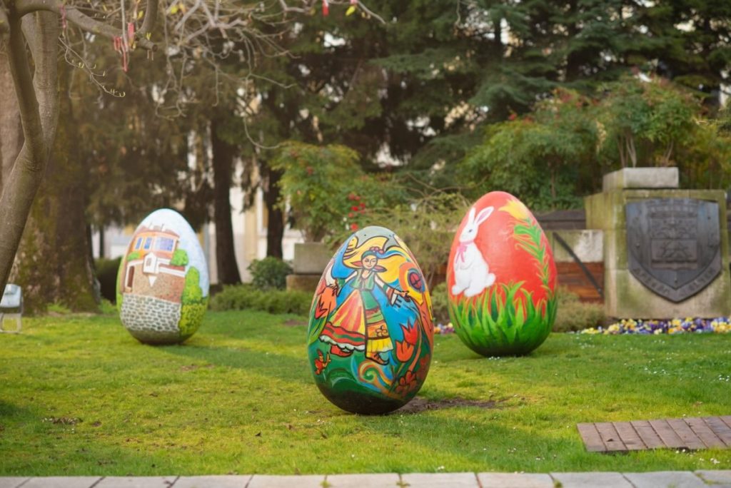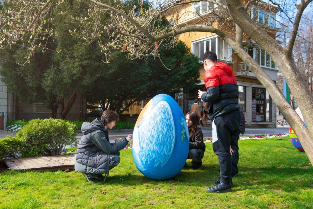 В зелените площи пред Община Пловдив талантливите ученици от Националната гимназия за сценични и екранни изкуства, под вещото ръководството на преподавателя Димитър Къркеланов, днес вдъхнаха нов живот на 10 гигантски макета на яйца. Пред очите на минувачите младите творци разгърнаха великолепни великденски сюжети, превръщайки площада в сияйна галерия на открито. Всяка година тези уникални арт инсталации се превръщат в любим фон за снимки и внасят усмивки в ежедневието на хиляди пловдивчани и гости на града.