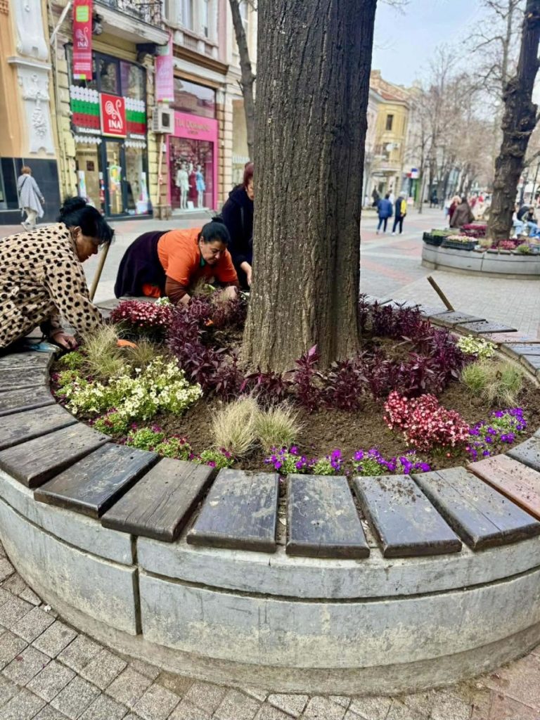 От ОП „Градини и паркове“ извършиха цялостно обновяване на растителността в декоративните вази по протежение на централната част. Новото зацветяване внася пролетно  настроение и още повече красота в градската среда.