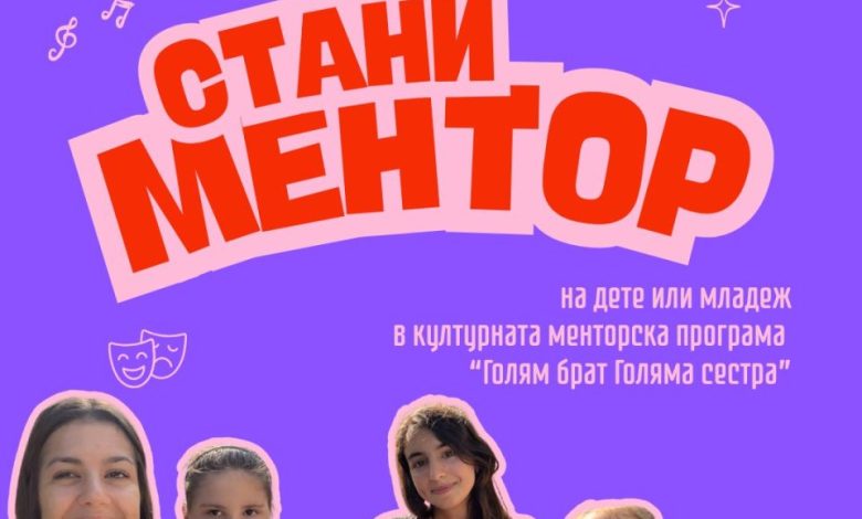 Асоциация „Голям брат, Голяма сестра – България“ обявява старт на третото издание на своята културна менторска програма в град Пловдив. Целта е да създаде възможност за млади хора да станат ментори на деца и младежи в неравностойно положение чрез културни и артистични преживявания.