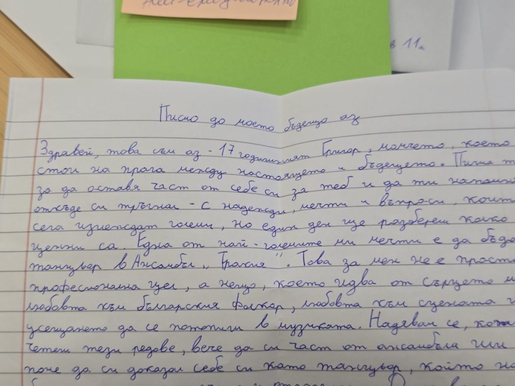 Специален момент в конкурса беше и участието на дванадесетокласничката Мария Цонева, която спечели първо място с писмо до бъдещето си Аз, написано още в осми клас. Писмата на класа са били запазени от класния ръководител и тази година са  включени в конкурса. Мария споделя, че мечтата ѝ тогава да стане неврохирург днес е прераснала в желание да следва ветеринарна медицина и да спасява животни.