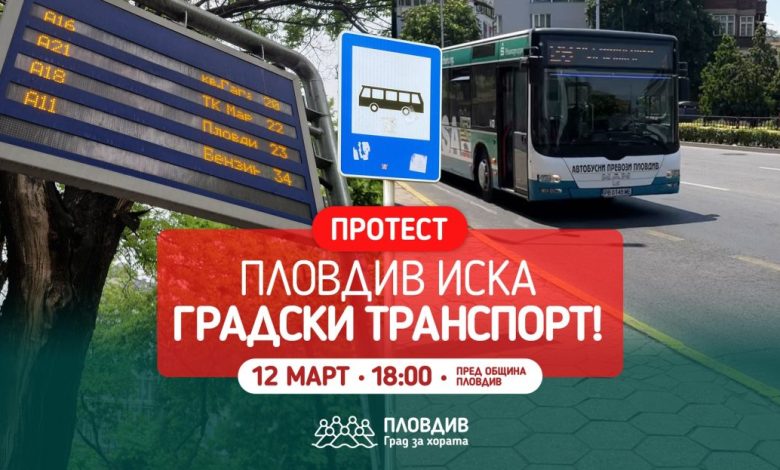 Протест с искане за реални мерки за подобряване на градския транспорт в Пловдив ще се проведе на 12 март от 18:00 часа пред Община Пловдив на пл. „Стефан Стамболов“, а инициаторите – Пловдив – град за хората, призовават повече хора да се включат в недоволството срещу дългото чакане по спирките, намаленото финансиране и неработещите системи.