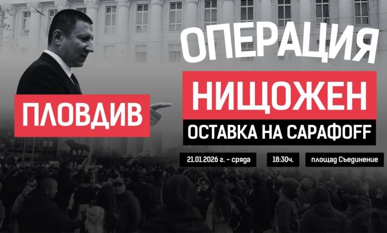 Граждански протест с искане за незабавната оставка на Борислав Сарафов ще се проведе в Пловдив. Събитието е организирано от Обединение „Студенти против мафията“ и Инициатива „Правосъдие за всеки“ и ще се проведе на 21 януари 2026 г. (сряда) от 18:30 часа на площад „Съединение“, в непосредствена близост до сградата на Прокуратурата.