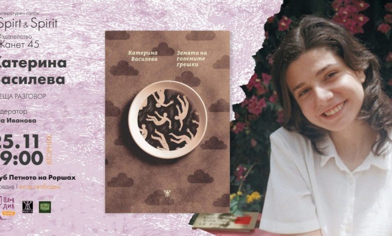 Литературният фестивал „Пловдив чете“, Литературен салон Spirt & Spirit, издателство „Жанет 45“ и клуб „Петното на Роршах“ канят пловдивската публика на специална литературна вечер, посветена на един от най-ярките нови гласове в съвременната българска поезия – Катерина Василева. Събитието ще се проведе на 25 ноември от 19:00 ч. в пространството на „Петното на Роршах“, а разговорът с авторката ще бъде воден от Ина Иванова.