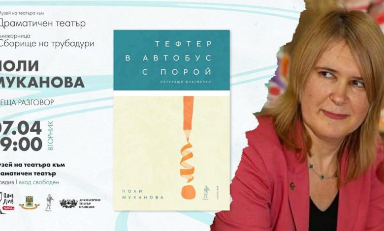 Гост на срещата ще бъде писателката Поли Муканова, която ще представи книгата си „Тефтер в автобус с порой“. Разговорът ще бъде модериран от Ина Иванова. Събитието е част от програмата „Пловдив чете“ и ще предложи деликатен и безстрашен поглед към живота „тук и сега“, към скритите знаци в мимоходом забелязаното и към записаното като съзнателен акт на памет.