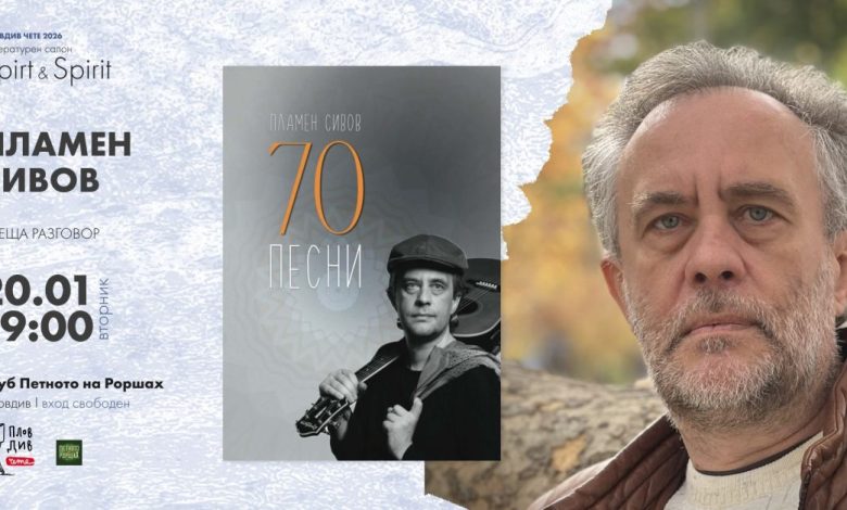 Литературният салон „Spirit & Spirit“ в Пловдив открива новата година със среща с поета и музикант Пламен Сивов. Събитието ще се състои на 20 януари от 19:00 ч. в клуб „Петното на Роршах“, а разговорът ще бъде модериран от Деси Шишманова.