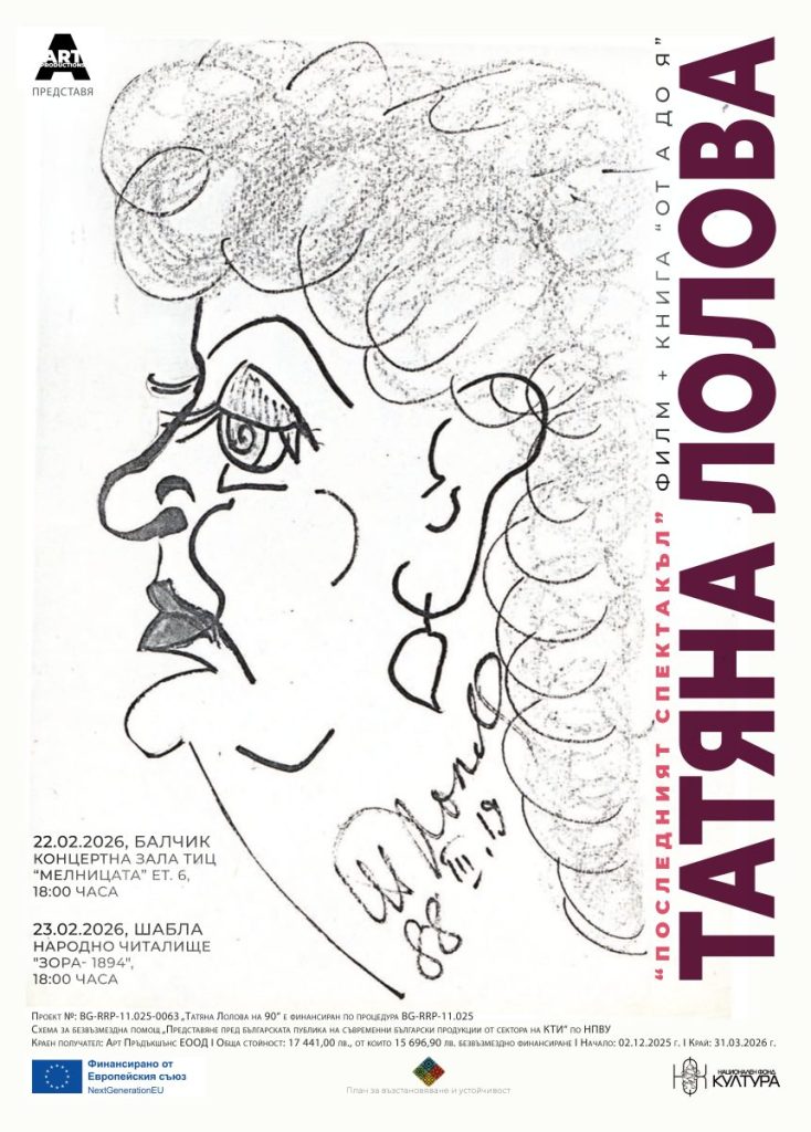 Проектът „Татяна Лолова на 90“ се реализира с финансиране по Националния план за възстановяване и устойчивост и цели да срещне българската публика със съвременни културни продукции, посветени на голямата актриса.