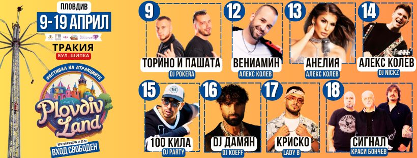 Фестивалът на атракциите се завръща в район Тракия за Великден. Проектът ще предложи микс от мащабни концерти в различни стилове, най-модерните атракции, невероятна улична храна и сладкиши, предлагайки целодневно безплатно забавление на своите посетители в рамките на единадесет фестивални дни от 9-ти до 19-ми април в кв.Тракия.